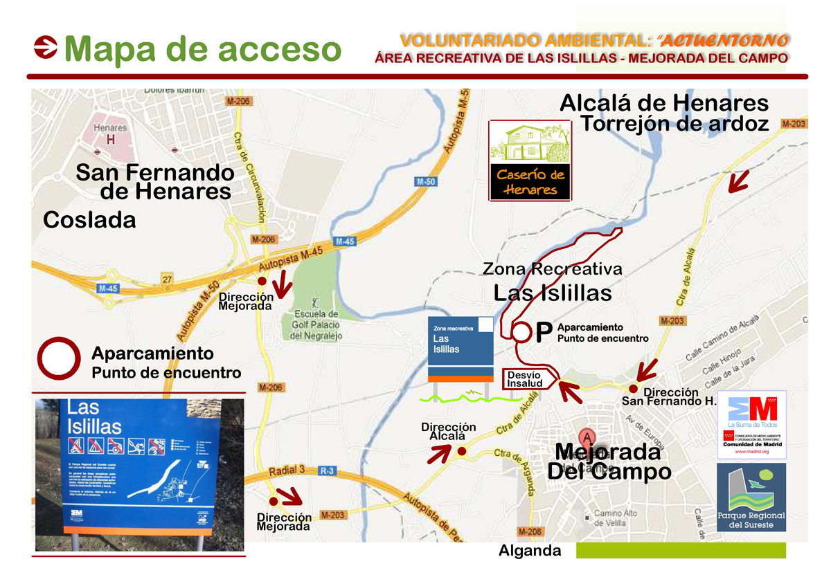 Si quieres conocer la naturaleza más cercana y ayudar a conservar tu medio ambiente, ven al paraje natural de Las Islillas. Vamos a reforestar con especies autóctonas, limpiar los residuos existentes y recolectar frutos otoñales para su posterior plantación en futuras ocasiones y la dispersión de semillas a través del río Henares. Todo mientras disfrutamos de un entorno de gran valor ambiental como es el Parque Regional del Sureste. La salida será a las 10.30h desde el aparcamiento del área recreativa "Las Islillas" (consultar plano para llegar). La cita está orientada a colectivos y particulares (a partir de 12 años) siendo necesaria la reserva de plaza, llamando al Centro de Educación Ambiental Caserío de Henares, de lunes a viernes en horario de 10h a 17.30h: 91-6738299. No se realizan reservas vía correo electrónico.